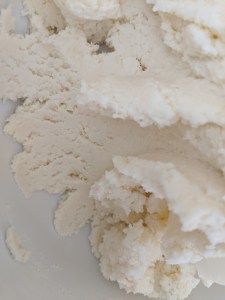 IN MIXER: Cream butter & cream cheese extremely well. Mix in vanilla. Mix in sugar & coconut in batches, letting fully combine between additions.